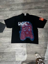 DTF with rhinestones on Heavy weight Shaka wear cropped tee designed by Sl0gz.